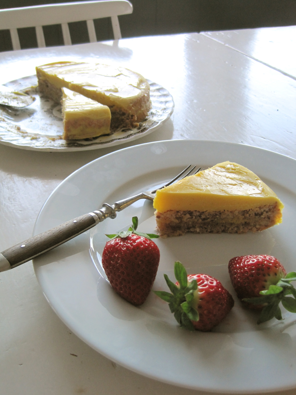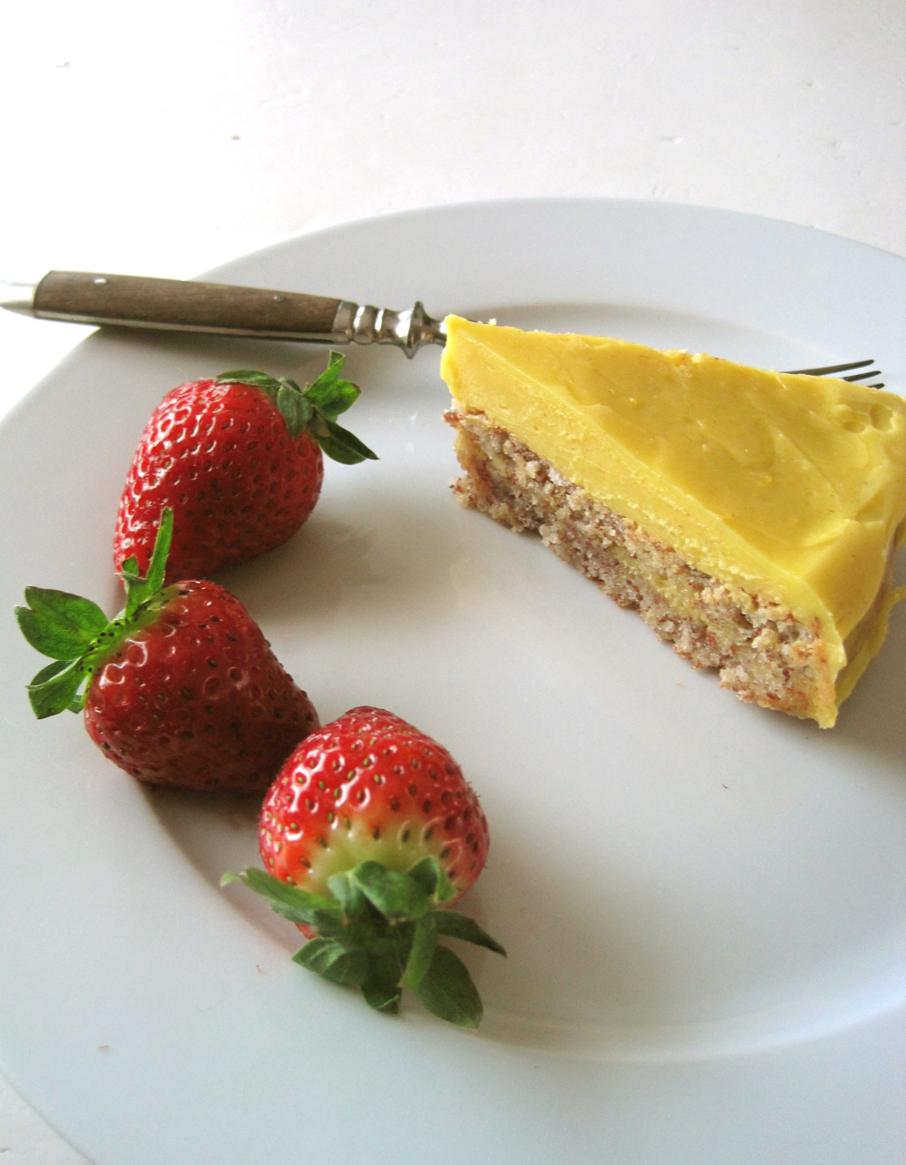 Suksessterte er en av de mest typiske norske kaker. Jeg tror at hvis man spør en gruppe av utlendinger å lage en liste over de typiske norske kaker, vil Suksessterte være i alle listene. Hvor vakker er denne kaken? Det er nydelig, den skinnende gule toppen er bare uimotståelig. Men det meste av tiden smaker suksessterter altfor søtt. Jeg like det, jeg vil ikke nekte for det, men jeg vanligvis kan ikke tolerere å spise den. På grunn av alle de egg som brukes for å gjøre denne terte, er det vanskelig å redusere mengden av sukker tilsatt, ville det gjøre egget smak ganske sterk. Den beste måten å løse dette problemet er å tilsette noe ekstra smak for å balansere resultatet. Til denne terte jeg tilsatt mandel likør, til både mandelbunn og gul krem samtidig jeg redusere mengden av sukker.